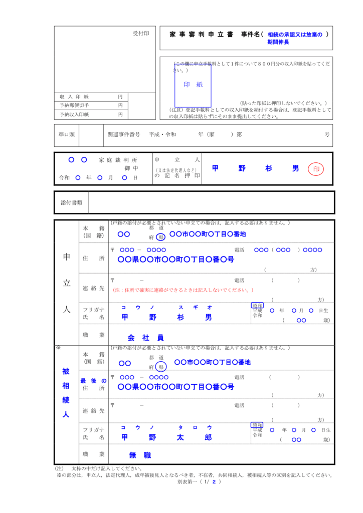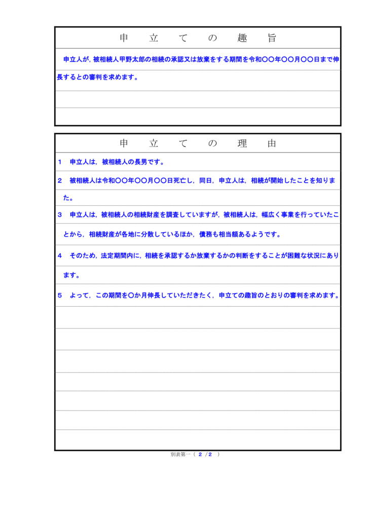 期間伸長の申立書記載例】出典元:裁判所ウェブサイト