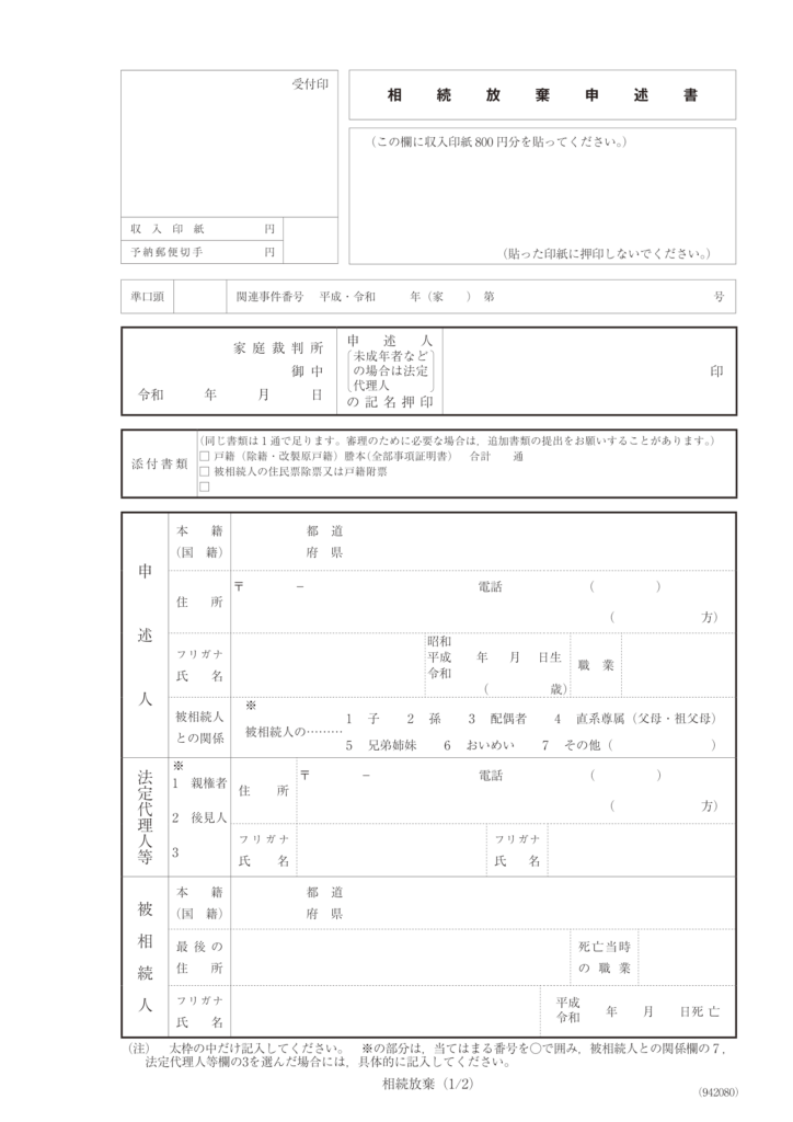相続放棄の申述書(そうぞくほうきのしんじゅつしょ)は、家庭裁判所へ提出する重要な書類であり、形式の不備や記載内容の誤りがあると受理されない可能性があるため、正確に作成する必要があります。
