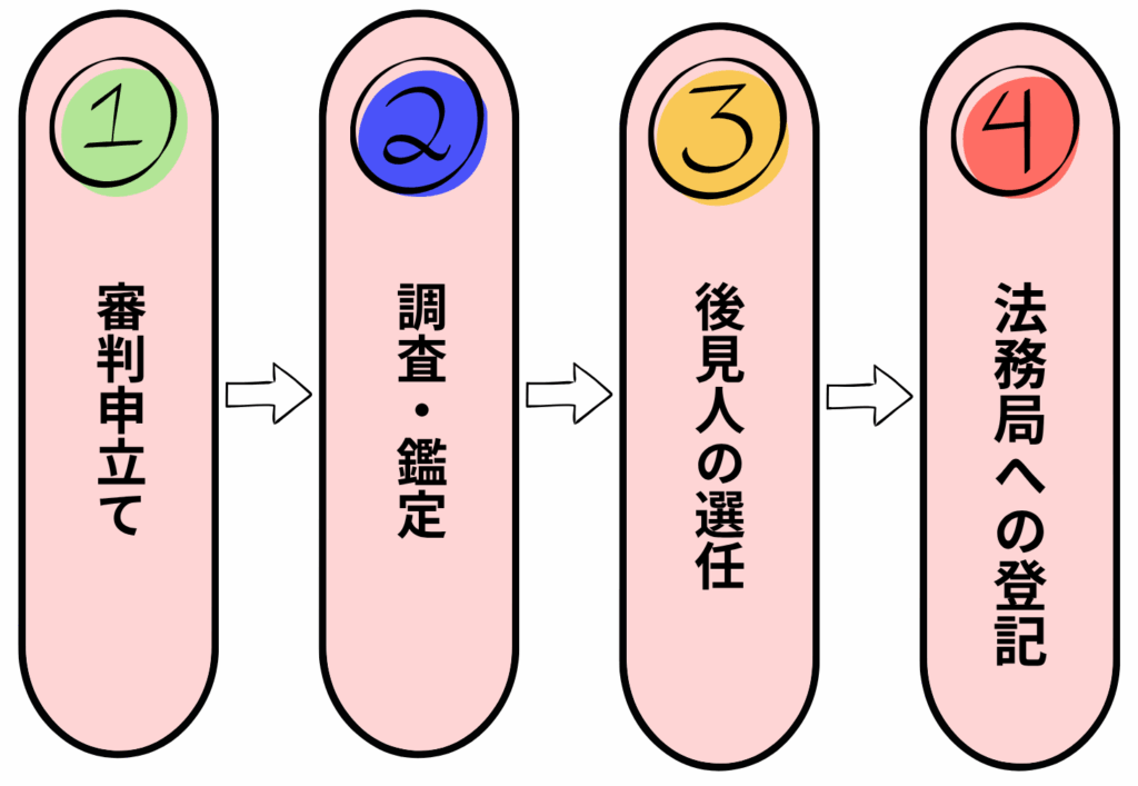 成年後見制度の開始にはすべて家庭裁判所への「審判の申立て」が必要です。