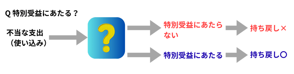 3. 受益者の特定:その支出が特定の相続人の利益となったこと(例:自分の借金返済に使った、自分の口座に送金した)。