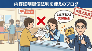 **「郵便局の窓口」**で手続きを行う方法を解説します。「たかが郵便」と侮ってはいけません。内容証明郵便には、法律で定められたミリ単位の形式ルールが存在します。準備不足で窓口に行くと、「文字数がオーバーしています」「訂正印が足りません」と指...